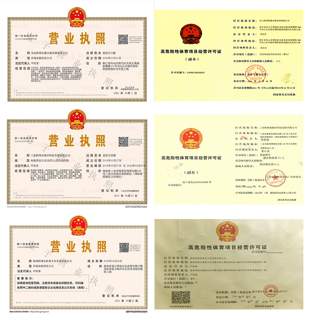 公司成立于2008年8月(原:三亞北緯十八度潛水俱樂部有限公司),下設(shè)三亞特締思海洋科技發(fā)展有限公司、舟山特締思潛水俱樂部有限公司、海南特締思體育文化發(fā)展有限公司。公司是中國潛水運動協(xié)會的注冊會員,也是PADI、CMAS等潛水組織授權(quán)的潛水培訓辦證機構(gòu)。公司目前主要負責三亞海棠灣洲際度假酒店海洋館、舟山長喬海洋公園、海南陵水富力海洋世界等場館的潛水運營管理。