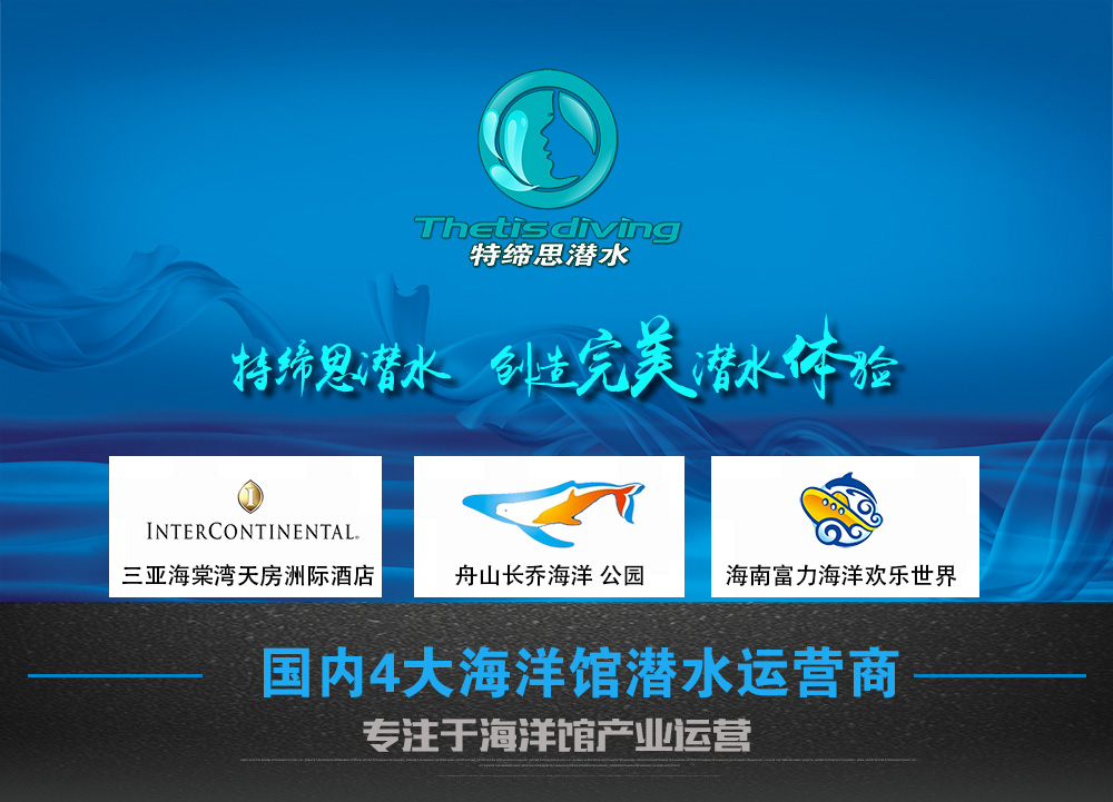 特締思潛水是一家集潛水培訓(xùn)、潛水器材銷售、海洋館運(yùn)營管理等為一體的管理公司!目前公司主要在三亞海棠灣洲際度假酒店、海南陵水富力海洋歡樂世界、舟山長喬海洋公園負(fù)責(zé)潛水項(xiàng)目的運(yùn)營。PADI5星潛水中心和SSI潛水中心,德國“BAUER寶華”空壓機(jī)、韓國SEAWALKER海底漫步、美國SCUBAPRO和意大利MARES和CRESSI等國際品牌潛水器材銷售代理。